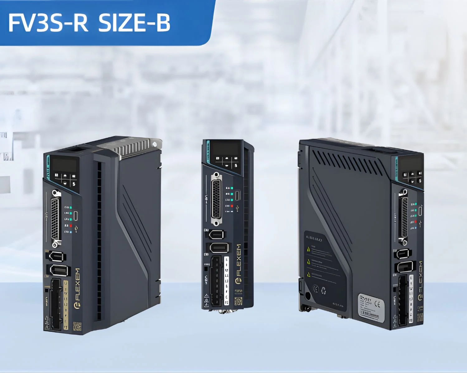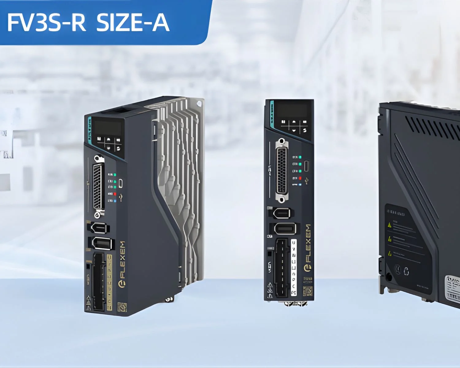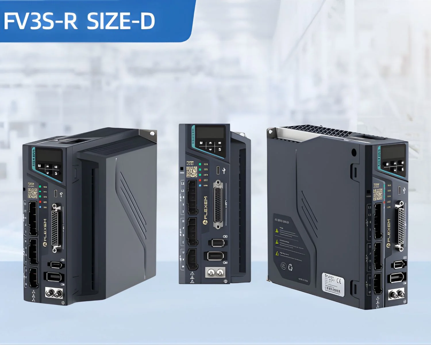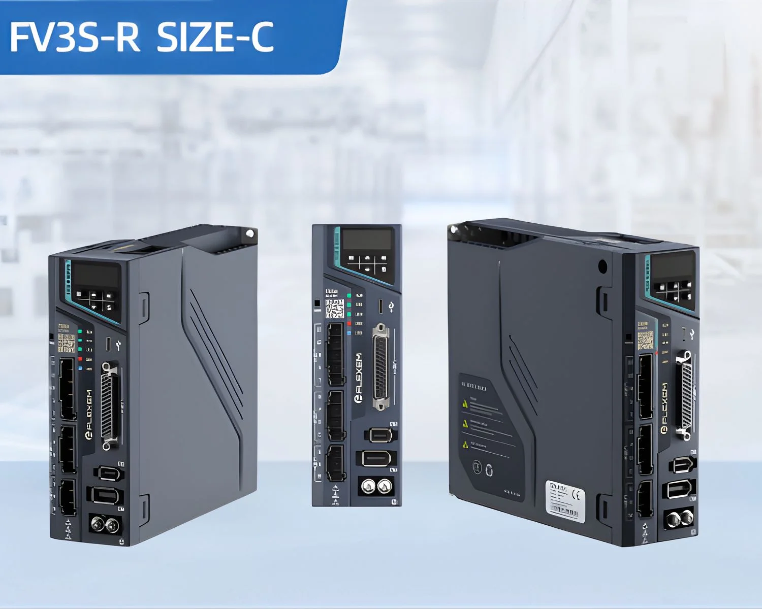 FLEXEM FV3S series general servo products, rotary type. 17/23bit multi-turn absolute motor, 500k pulse input, support EtherCAT, Modbus communication protocol, Type-C debugging, built-in 24V power supply, Bluetooth upload and download parameters.